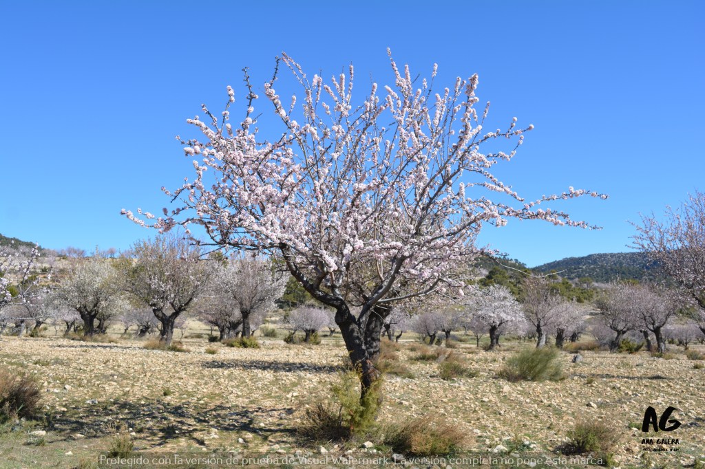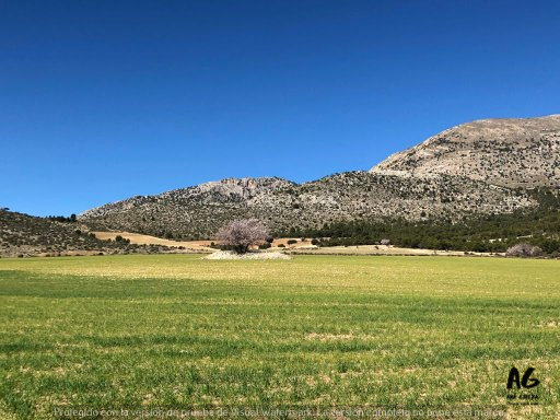 Recorremos veredas y campos de almendros y olivos. Las explotaciones ganaderas salpican el paisaje a un lado y otro del camino. El cielo azul, límpido y claro augura una jornada idónea para perderse en estas tierras presididas por la Sierra de La Sagra y sus imponentes 2.383 metros (la segunda cima más alta de la mitad sur peninsular, solo superada por Sierra Nevada).