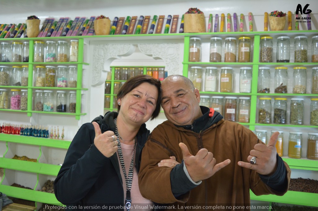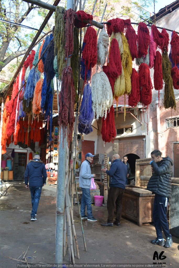De ahí nos dirigimos a una de las muchas tiendas donde el viajero puede comprar alguno de los numerosos productos de piel que se venden a bajo precio en Marrakech. La fabricación casera y las precarias condiciones de los trabajadores están detrás de por qué se venden carteras, bolsos, mochilas y alfombras muy por debajo de lo que nos encontraríamos en cualquier tienda española.