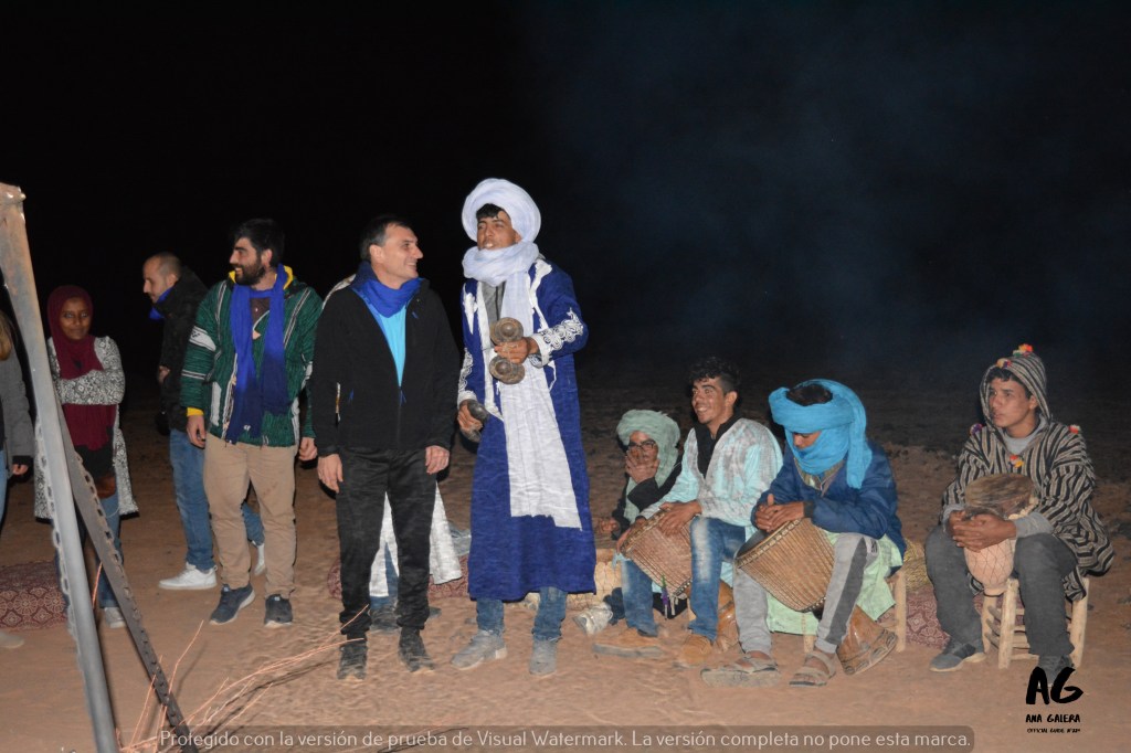 En torno a una hoguera, la fiesta bereber daba sus primeros pasos. Al principio, tímidamente para luego estallar en una expresión de alegría y júbilo donde viajeros, fuego y desierto nos fundimos en un solo ser.