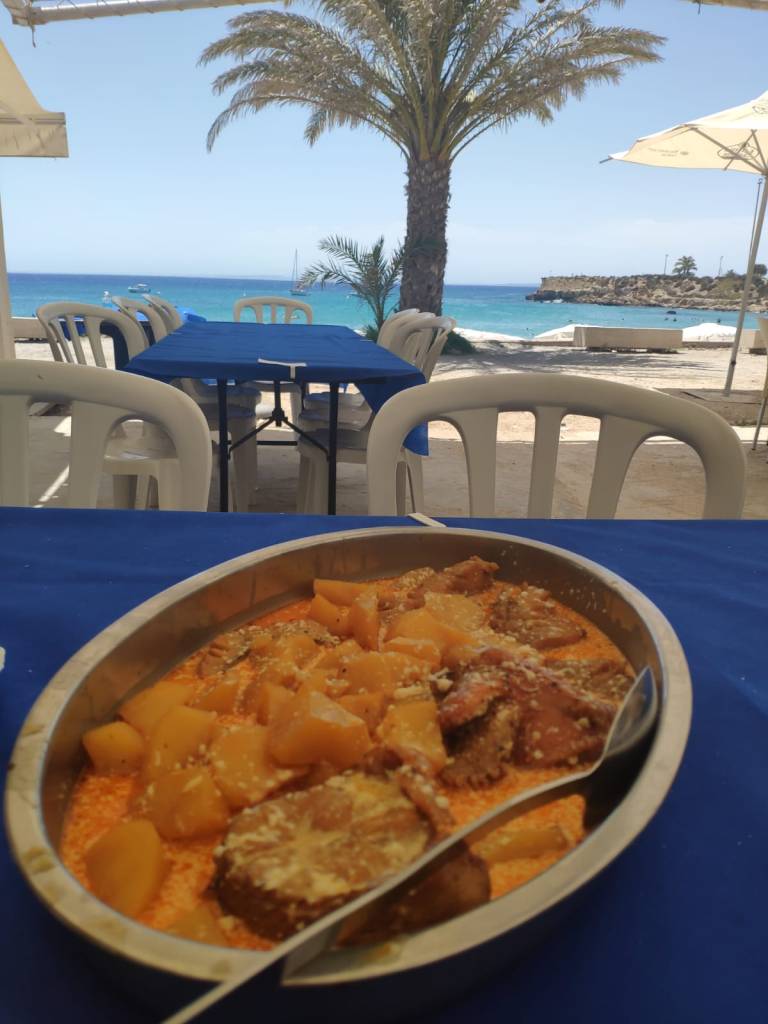 La isla también es punto de encuentro gastronómico donde el tradicional caldero es la principal estrella. Son varios los restaurantes que ofrecen menús a buen precio y en el que destacan, además del ya citado caldero, los arroces, los pulpos y los calamares a la plancha. Dosenelcamino.blog recomienda La Gloria. Un local familiar en el que calidad y precio se dan la mano, acompañado de un trato afable que tanto agradecemos los visitantes.