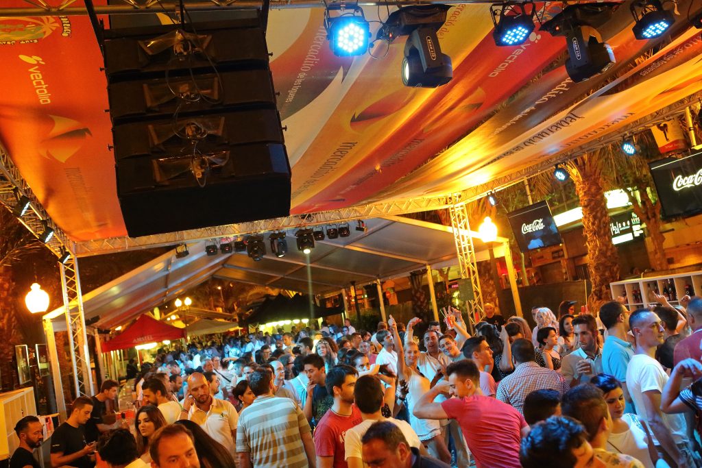 Las comisiones se organizan en barracas, calles valladas donde ponen mesas, sillas, un bar y un escenario. Las barracas son costeadas por los «barraquers», miembros de la Hoguera, y el uso de mesas suele ser privado.