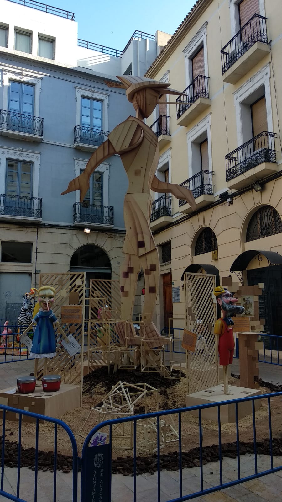 Tras este proceso empieza el modelaje y construcción de las piezas. La hoguera está construida con madera y cartón y cada vez se apuesta más por el uso de materiales reciclados, sostenibles y respetuosos con el medio ambiente.