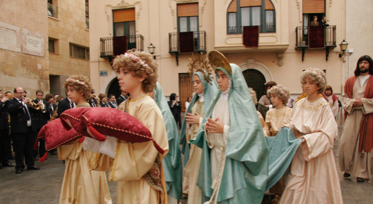 Poco o nada conocía yo de lo que suponía este acto, de la historia de una madre, la Virgen María, que anhela el morir para poder reunirse con su hijo, Jesucristo. Tampoco sabía que el ángel que bajaba en aquel aparato conocido por su forma como la Mangrana venía a concederle su deseo y a entregarle la palma dorada del Paraíso que debía llevar en su sepelio para protegerla el Maligno. La historia la aprendí después.