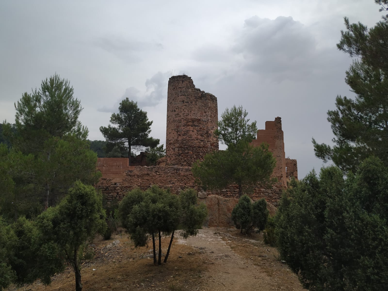 Los alcornocales nos señalan el camino a la cima. Estamos llegando. Poco a poco, el aire se hace más fresco. Por fin, se divisan las ruinas de una de las torres. Un poco más adelante se dibuja lo que antaño fue un imponente castillo. Ante nosotros, la montaña. La diosa que todo lo ve y a la que todos debemos pleitesísa. Nos sentimos privilegiados por estar bajo su manto.